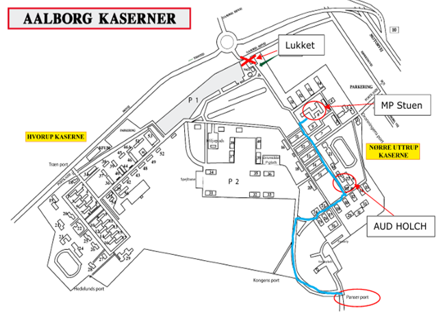 Besøgende, som ikke normalt har adgang til kasernen, skal oplyse navn og fødselsdato ved tilmelding til brug for adgang gennem vagten. HUSK! Indgang via Panserporten/Hvorup Kirkevej